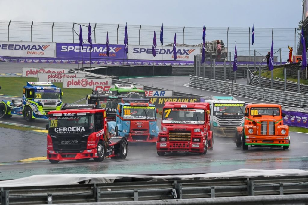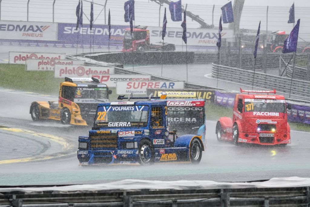 A chuva é um dos maiores desafios para qualquer corrida de caminhões. A presença de água na pista reduz o contato do pneu com o asfalto, diminuindo a aderência e tornando curvas e frenagens mais perigosas.