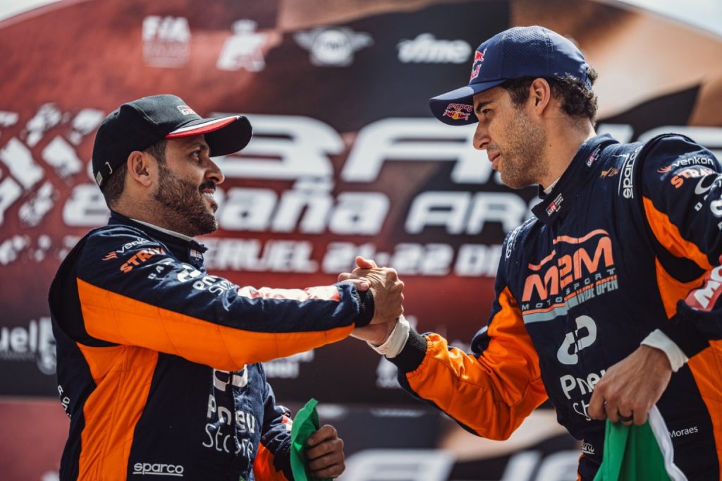 Os brasileiros Lucas Moraes e Kaique Bentivoglio terminaram em segundo lugar no tradicional Rally da Baja España Aragón neste sábado (22). Disputada na Espanha, a quarta etapa do Campeonato Mundial de Cross-Country da FIA teve Nasser Al-Attiyah como vencedor, com o tempo de 6h18min37s2 para um total de 512,3km. “Que fantástico esse resultado. Que fantástico poder competir no Mundial por uma equipe profissional como essa. É um grande dia para a gente”, disse Moraes.