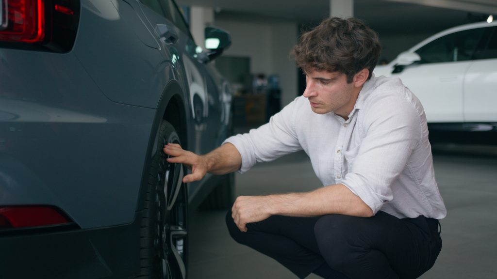 3. Observe toda a lateral externa dos pneus — se possível, use uma lanterna para ver os detalhes.
